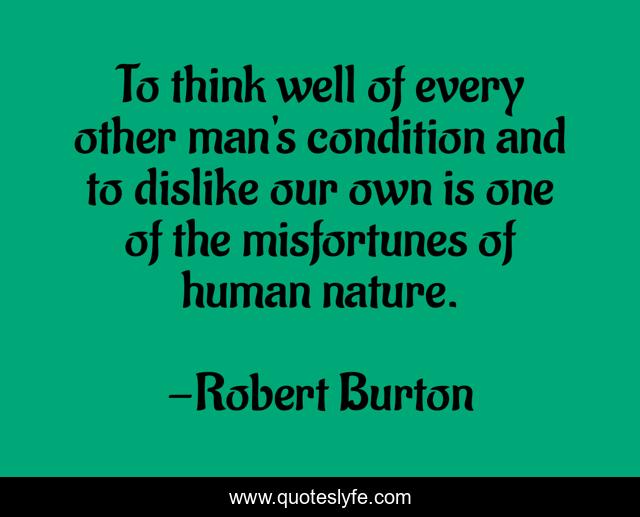 This page presents the quote "To think well of every other man's condition and to dislike our own is one of the misfortunes of human nature.". Author of this quote is Robert Burton. .