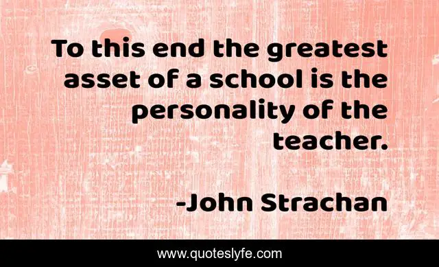 This page presents the quote "To this end the greatest asset of a school is the personality of the teacher.". Author of this quote is John Strachan. This quote is about school, personality,.