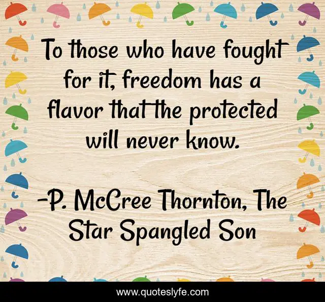 "P. McCree Thornton, The Star Spangled Son Quotes." Quoteslyfe.com, 2025. Fri. 05 Dec. 2025. <https://www.quoteslyfe.com/quote/To-those-who-have-fought-for-it-213563>.