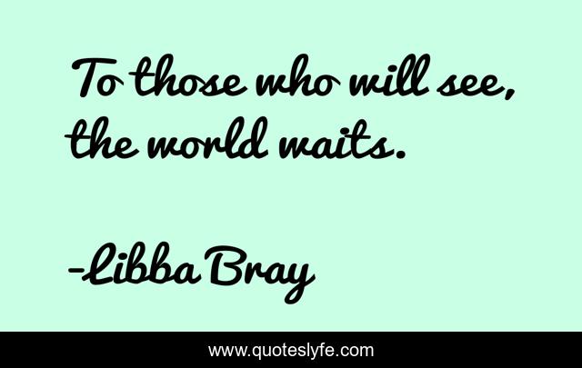 This page presents the quote "To those who will see, the world waits.". Author of this quote is Libba Bray. This quote is about enthusiasm, inspirational,.