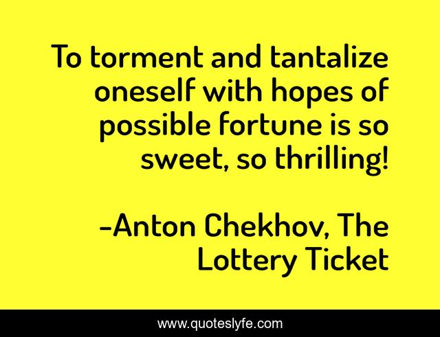 This page presents the quote "To torment and tantalize oneself with hopes of possible fortune is so sweet, so thrilling!". Author of this quote is Anton Chekhov, The Lottery Ticket. This quote is about sweet, thrill, possibility,.