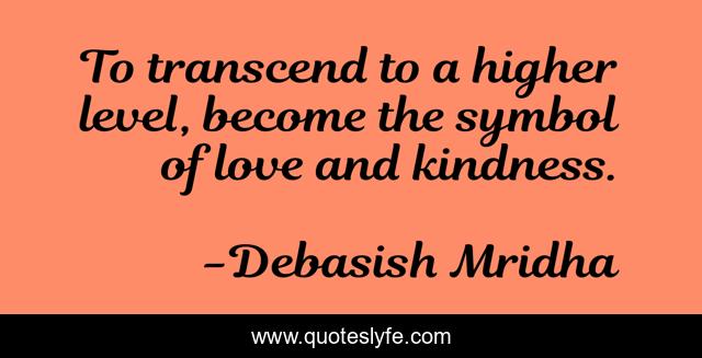 This page presents the quote "To transcend to a higher level, become the symbol of love and kindness.". Author of this quote is Debasish Mridha. This quote is about transcend, debasish, debasish-mridha, philosophy, higher-level, symbol-of-love-and-kindness, mridha,.
