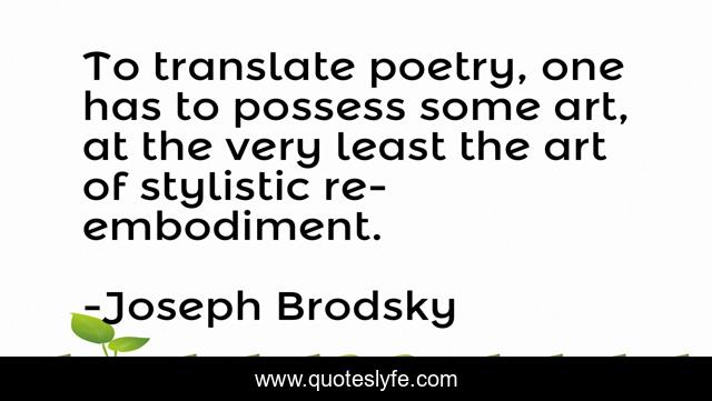 This page presents the quote "To translate poetry, one has to possess some art, at the very least the art of stylistic re-embodiment.". Author of this quote is Joseph Brodsky. This quote is about art, stylistic,.