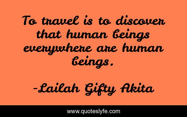 "Lailah Gifty Akita Quotes." Quoteslyfe.com, 2025. Mon. 08 Dec. 2025. <https://www.quoteslyfe.com/quote/To-travel-is-to-discover-that-human-13373>.