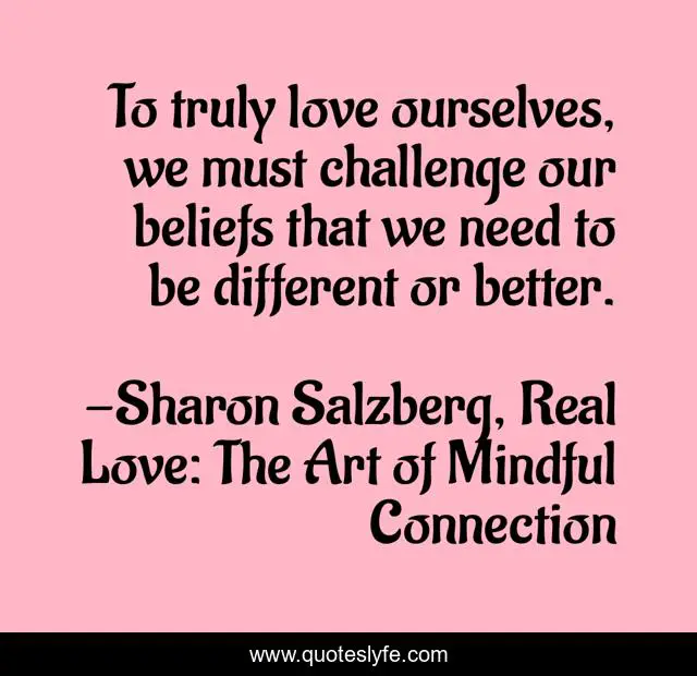 "Sharon Salzberg, Real Love: The Art of Mindful Connection Quotes." Quoteslyfe.com, 2025. Sat. 06 Dec. 2025. <https://www.quoteslyfe.com/quote/To-truly-love-ourselves-we-must-challenge-35617>.