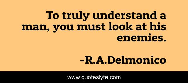 This page presents the quote "To truly understand a man, you must look at his enemies.". Author of this quote is R.A.Delmonico. .