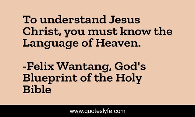 This page presents the quote "To understand Jesus Christ, you must know the Language of Heaven.". Author of this quote is Felix Wantang, God's Blueprint of the Holy Bible. This quote is about jesus-christ-of-nazareth, heaven, language,.