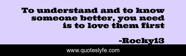 This page presents the quote "To understand and to know someone better, you need is to love them first". Author of this quote is Rocky13. This quote is about life-experience, understanding-oneself-and-others, life-lessons, life-philosophy, love, affection,.