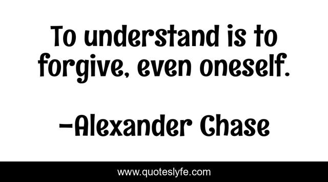 This page presents the quote "To understand is to forgive, even oneself.". Author of this quote is Alexander Chase. This quote is about understand, forgive, oneself,.