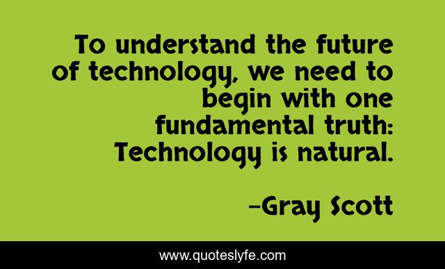 This page presents the quote "To understand the future of technology, we need to begin with one fundamental truth: Technology is natural.". Author of this quote is Gray Scott. This quote is about future, natural, truth,.