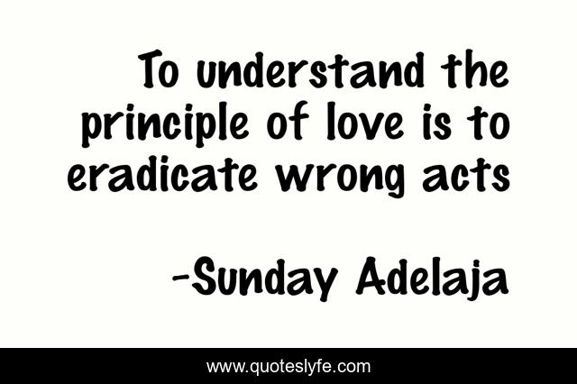This page presents the quote "To understand the principle of love is to eradicate wrong acts". Author of this quote is Sunday Adelaja. This quote is about love, wrong, understand, principle, act, affection,.