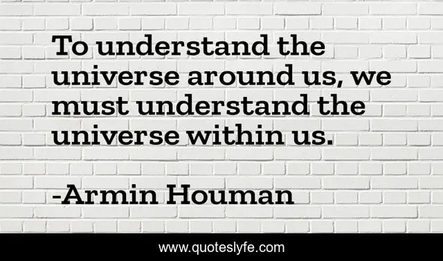 This page presents the quote "To understand the universe around us, we must understand the universe within us.". Author of this quote is Armin Houman. This quote is about universe, understanding, understanding-life, self-improvement, quotes-about-life, awareness,.