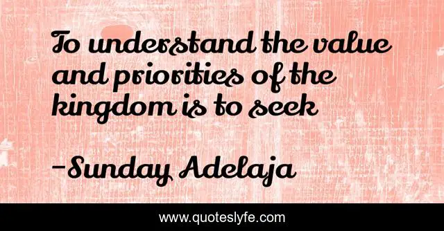 This page presents the quote "To understand the value and priorities of the kingdom is to seek". Author of this quote is Sunday Adelaja. This quote is about kingdom, priority, understand, seek, value,.