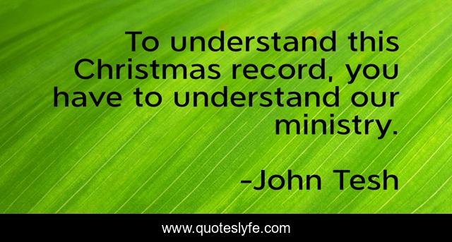 This page presents the quote "To understand this Christmas record, you have to understand our ministry.". Author of this quote is John Tesh. This quote is about understand, ministry,.