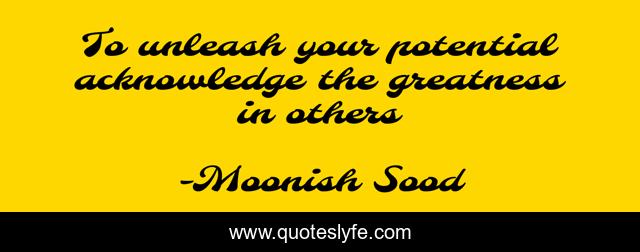 This page presents the quote "To unleash your potential acknowledge the greatness in others". Author of this quote is Moonish Sood. This quote is about management, self-development,.