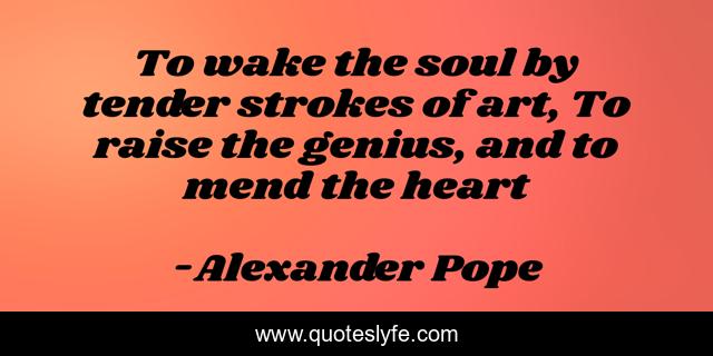 This page presents the quote "To wake the soul by tender strokes of art, To raise the genius, and to mend the heart". Author of this quote is Alexander Pope. This quote is about art, poetry,.