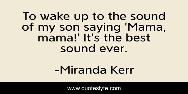 This page presents the quote "To wake up to the sound of my son saying 'Mama, mama!' It's the best sound ever.". Author of this quote is Miranda Kerr. This quote is about wake up, saying, son,.
