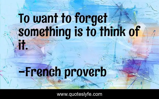This page presents the quote "To want to forget something is to think of it.". Author of this quote is French proverb. .