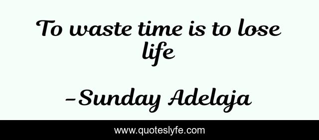 This page presents the quote "To waste time is to lose life". Author of this quote is Sunday Adelaja. This quote is about loss, life, blessing, finance, money, work, job, joblessness, purpose,.