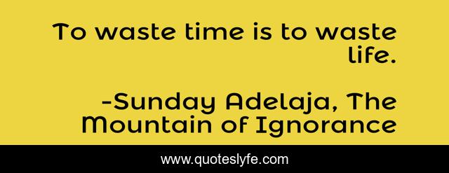 "Sunday Adelaja, The Mountain of Ignorance Quotes." Quoteslyfe.com, 2025. Tue. 09 Dec. 2025. <https://www.quoteslyfe.com/quote/To-waste-time-is-to-waste-life-39441>.