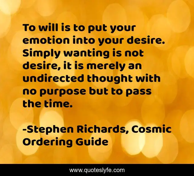 "Stephen Richards, Cosmic Ordering Guide Quotes." Quoteslyfe.com, 2025. Sun. 07 Dec. 2025. <https://www.quoteslyfe.com/quote/To-will-is-to-put-your-emotion-79885>.