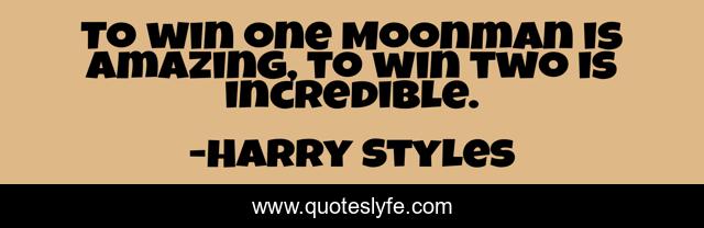 This page presents the quote "To win one Moonman is amazing, to win two is incredible.". Author of this quote is Harry Styles. This quote is about win, two, incredible,.