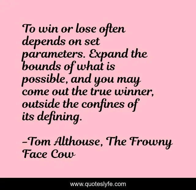 "Tom Althouse, The Frowny Face Cow Quotes." Quoteslyfe.com, 2025. Mon. 08 Dec. 2025. <https://www.quoteslyfe.com/quote/To-win-or-lose-often-depends-on-92192>.