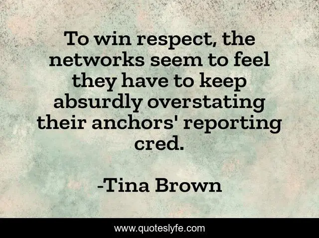 This page presents the quote "To win respect, the networks seem to feel they have to keep absurdly overstating their anchors' reporting cred.". Author of this quote is Tina Brown. This quote is about feel, win, keep,.