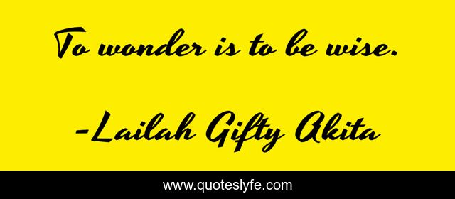 "Lailah Gifty Akita Quotes." Quoteslyfe.com, 2025. Sat. 06 Dec. 2025. <https://www.quoteslyfe.com/quote/To-wonder-is-to-be-wise-13533>.