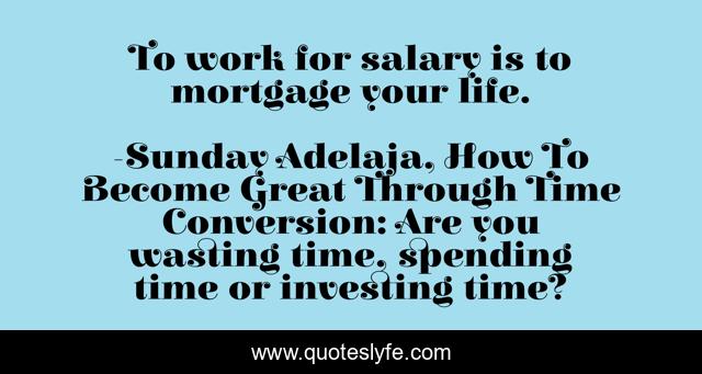 "Sunday Adelaja, How To Become Great Through Time Conversion: Are you wasting time, spending time or investing time? Quotes." Quoteslyfe.com, 2025. Sat. 06 Dec. 2025. <https://www.quoteslyfe.com/quote/To-work-for-salary-is-to-mortgage-39040>.