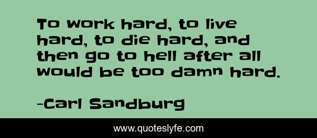 This page presents the quote "To work hard, to live hard, to die hard, and then go to hell after all would be too damn hard.". Author of this quote is Carl Sandburg. This quote is about hell, work, humor, living,.