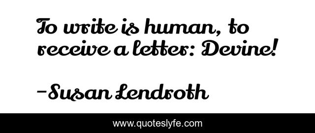 This page presents the quote "To write is human, to receive a letter: Devine!". Author of this quote is Susan Lendroth. This quote is about correspondence, letter-writing, letters, author, writer, mail,.