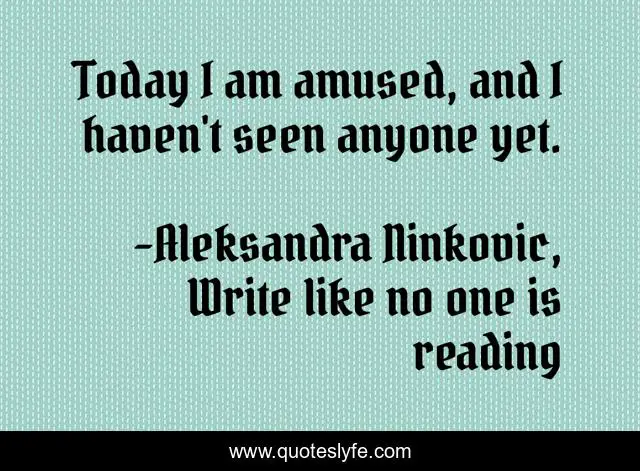 "Aleksandra Ninkovic, Write like no one is reading Quotes." Quoteslyfe.com, 2025. Fri. 05 Dec. 2025. <https://www.quoteslyfe.com/quote/Today-I-am-amused-and-I-haven-202181>.