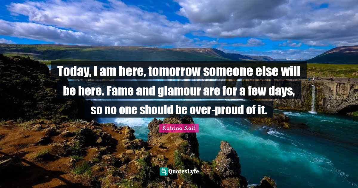 This page presents the quote "Today, I am here, tomorrow someone else will be here. Fame and glamour are for a few days, so no one should be over-proud of it.". Author of this quote is Katrina Kaif. This quote is about proud, today, fame, glamour, tomorrow,.