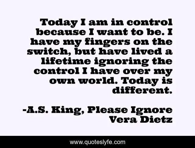 "A.S. King, Please Ignore Vera Dietz Quotes." Quoteslyfe.com, 2025. Sat. 06 Dec. 2025. <https://www.quoteslyfe.com/quote/Today-I-am-in-control-because-I-59435>.