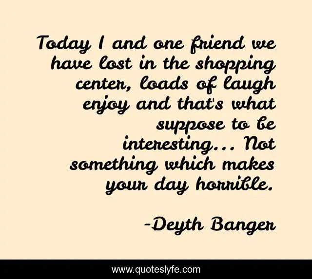 This page presents the quote "Today I and one friend we have lost in the shopping center, loads of laugh enjoy and that's what suppose to be interesting... Not something which makes your day horrible.". Author of this quote is Deyth Banger. This quote is about interesting, laugh, something, today, horrible,.