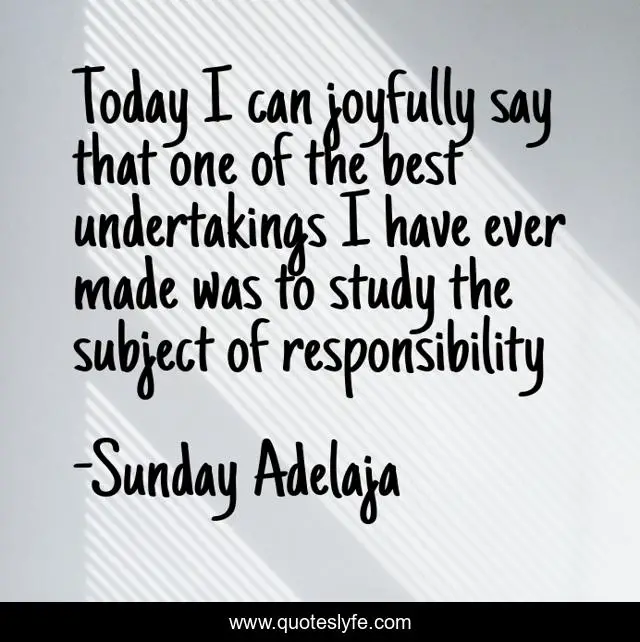 This page presents the quote "Today I can joyfully say that one of the best undertakings I have ever made was to study the subject of responsibility". Author of this quote is Sunday Adelaja. This quote is about undertakings, study, was, joyfully, today,.