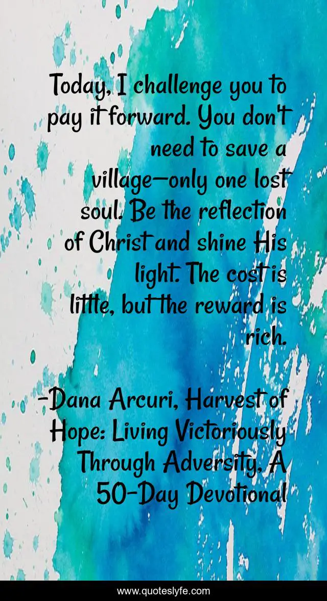 "Dana Arcuri, Harvest of Hope: Living Victoriously Through Adversity, A 50-Day Devotional Quotes." Quoteslyfe.com, 2025. Mon. 08 Dec. 2025. <https://www.quoteslyfe.com/quote/Today-I-challenge-you-to-pay-it-124182>.