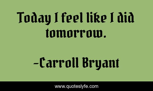 This page presents the quote "Today I feel like I did tomorrow.". Author of this quote is Carroll Bryant. This quote is about humorous, comedy-humor, humor, comedy, humorist,.