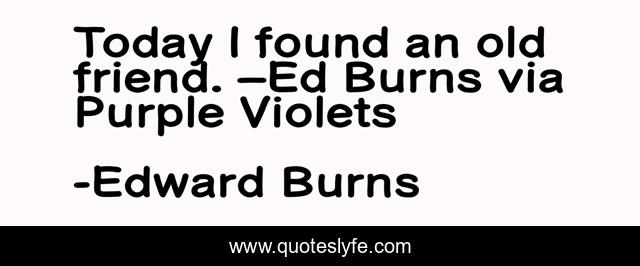 This page presents the quote "Today I found an old friend. –Ed Burns via Purple Violets". Author of this quote is Edward Burns. .