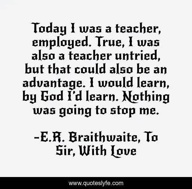 "E.R. Braithwaite, To Sir, With Love Quotes." Quoteslyfe.com, 2025. Fri. 05 Dec. 2025. <https://www.quoteslyfe.com/quote/Today-I-was-a-teacher-employed-True-36557>.