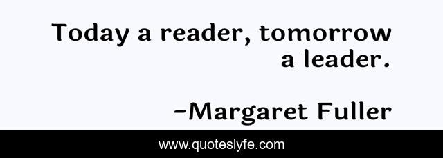 This page presents the quote "Today a reader, tomorrow a leader.". Author of this quote is Margaret Fuller. This quote is about read, reading, reader,.