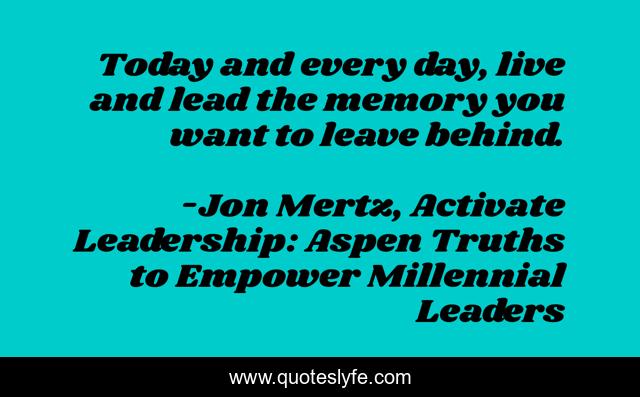 "Jon Mertz, Activate Leadership: Aspen Truths to Empower Millennial Leaders Quotes." Quoteslyfe.com, 2025. Sat. 06 Dec. 2025. <https://www.quoteslyfe.com/quote/Today-and-every-day-live-and-lead-133125>.