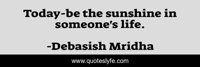 This page presents the quote "Today-be the sunshine in someone's life.". Author of this quote is Debasish Mridha. This quote is about life, debasish, mridha, sunshine, philosophy, someone, today,.