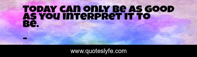 This page presents the quote "Today can only be as good as you interpret it to be.". Author of this quote is . This quote is about edmond-mbiaka, interpretations, interpretation,.