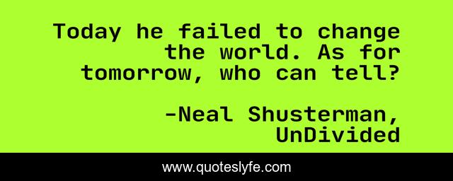 "Neal Shusterman, UnDivided Quotes." Quoteslyfe.com, 2025. Fri. 05 Dec. 2025. <https://www.quoteslyfe.com/quote/Today-he-failed-to-change-the-world-145028>.