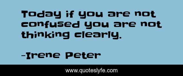 This page presents the quote "Today if you are not confused you are not thinking clearly.". Author of this quote is Irene Peter. .