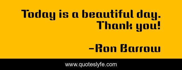 "Ron Barrow Quotes." Quoteslyfe.com, 2025. Sat. 06 Dec. 2025. <https://www.quoteslyfe.com/quote/Today-is-a-beautiful-day-Thank-you-73523>.