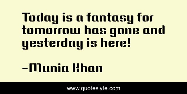 This page presents the quote "Today is a fantasy for tomorrow has gone and yesterday is here!". Author of this quote is Munia Khan. This quote is about fantasy, dreams, present, today,.