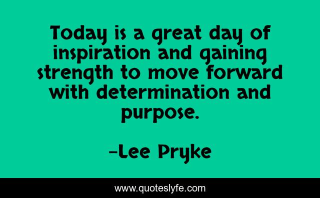 This page presents the quote "Today is a great day of inspiration and gaining strength to move forward with determination and purpose.". Author of this quote is Lee Pryke. This quote is about strength, determination, purpose, inspiration,.